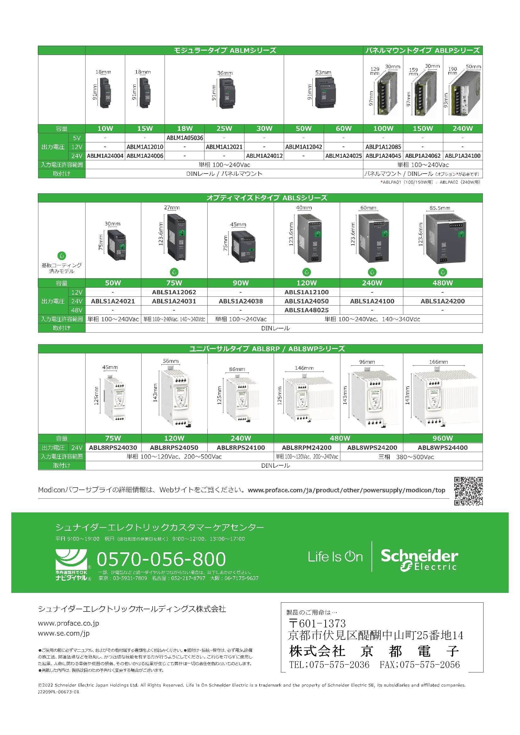 - ユニバーサルタイプ:3相500Vacまでの入力、出力72W〜960 Wまでをカバー、