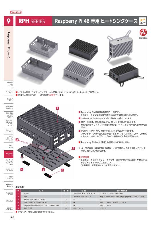 タカチ電機 Raspberry Pi 4B用 ヒートシンクケース RPHシリーズ